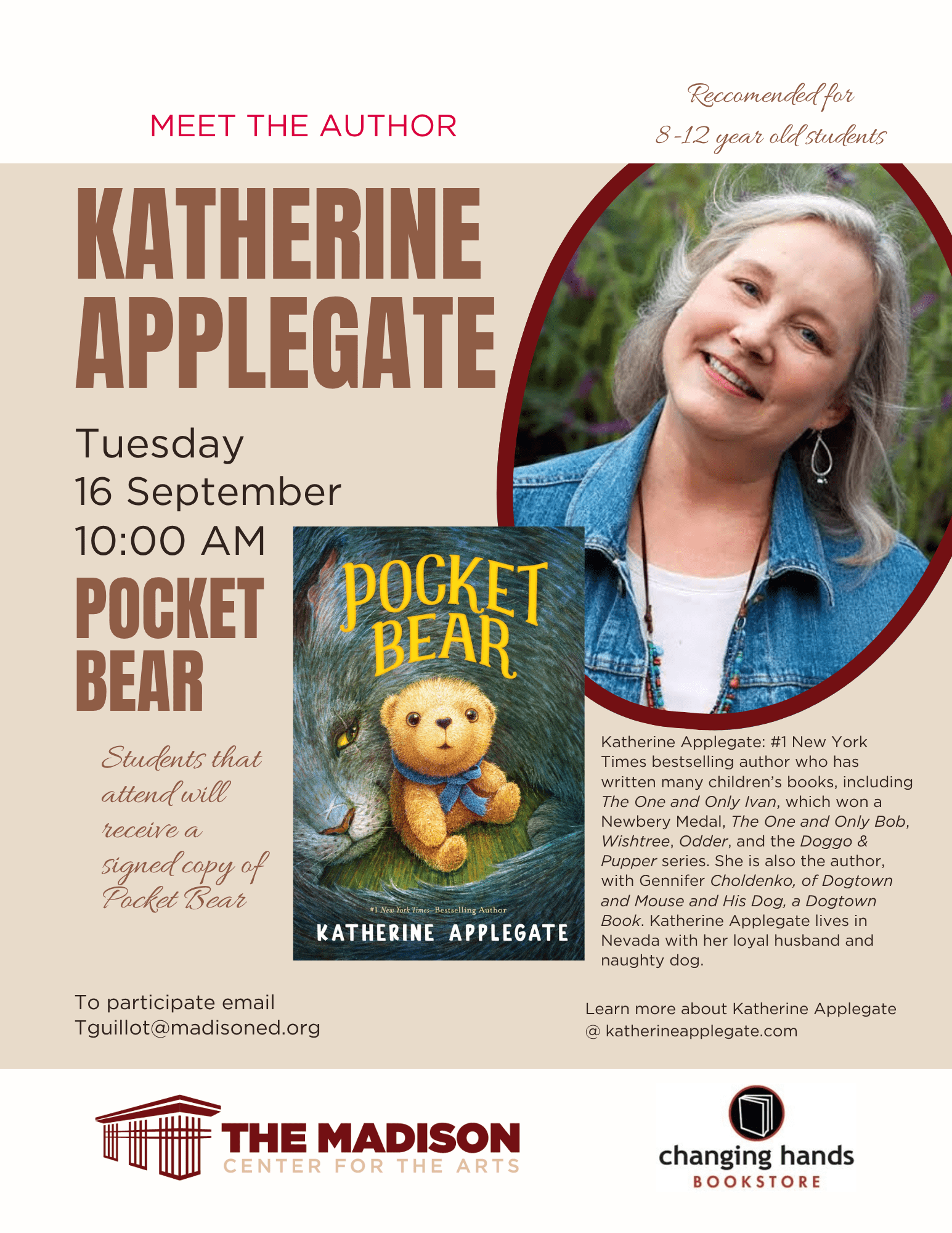 The Madison Center for the Arts partners with Changing Hands Bookstore to bring our students the incredible opportunity to meet the Author to new books to ignite their passion for reading.